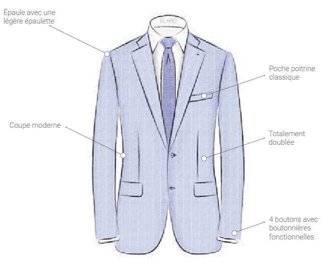 La veste Napolitaine vous procurera confort et liberté de mouvements de par son emmanchure haute et sa demi-doublure.